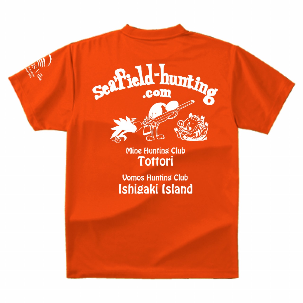 【SEAFIELD HUNTING × VAMOS VILLA × MONSTER FISHING DRY TEE】サンセットオレンジ×ホワイトロゴ